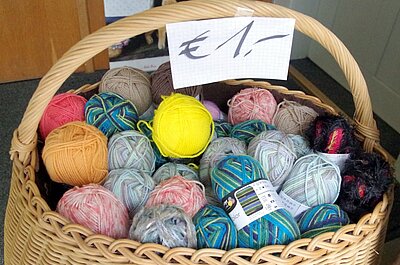 Und was gibt es noch? Baby-Spielzeug, Kinderbekleidung, Spielwaren, Geschenkartikel, Kommunionkleider und –Zubehör, eine Auswahl schöner Stoffe und Artikel von „Goebel“. Natürlich sind auch selbstgestrickte Accessoires dabei.