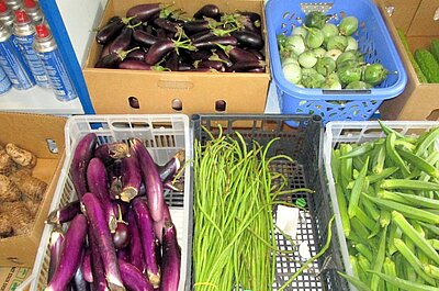 Im kleinen Geschäft neben der Gewerbebank wird zudem Obst und Gemüse angeboten, ferner Gefrierfisch und Süßigkeiten. Natürlich bedienen sich die asiatischen Landsleute des Chefs gern im Laden, denn sie wissen die Qualität der Produkte zu schätzen.