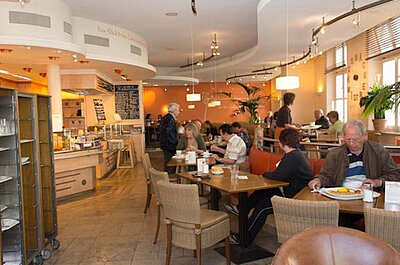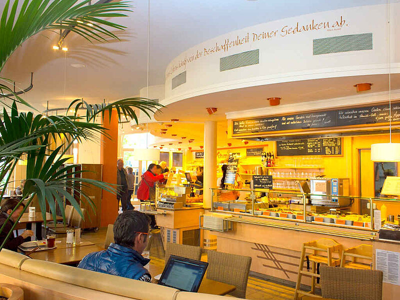Wechselnde warme Mittagsgerichte, Snacks und Salate, hausgerösteter Schmidt Kaffee, frische Backwaren uvm