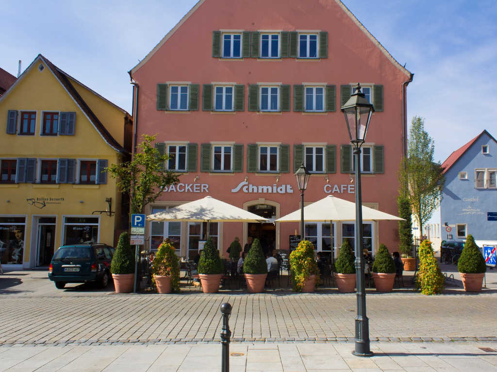 „Ihr Genuss ist das größte Lob für unser Backstubenteam." Das ist der Slogan von Inhaber Michael Schmidt und seiner Familiencrew. Ob Frühstück, Mittag oder doch zum Kaffee trinken, hier kommt jeder Genießer auf seine Kosten. An Sommertagen heißt es: Ab zum Bäcker Schmidt auf dessen gemütliche Terrasse (40 Plätze), wo das Gunzenhäuser Leben pulsiert.