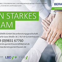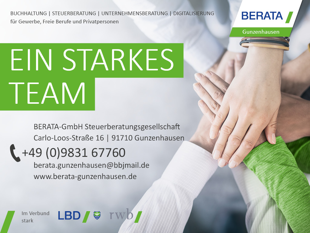 Als starkes Team verstehen wir uns bei der BERATA in Gunzenhausen! In unserer Kanzlei gehen wir jeden Tag den Herausforderungen des Steuerrechts nach, um für Sie das beste Ergebnis zu erzielen. So können Sie sich auf Ihr Business konzentrieren und dieses weiterentwickeln, während wir uns um Ihre Steuern kümmern.
