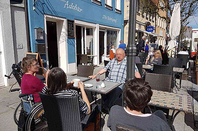 Im Bistro, das ein täglich wechselndes Mittagsgericht zu akzeptablen Preisen anbietet, können 30 Gäste Platz nehmen, im Außenbereich (30 Plätze) nehmen die Gäste unmittelbar teil am pulsierenden Leben auf dem Marktplatz.