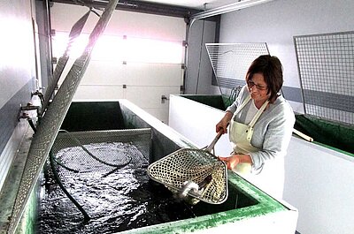 Heimische Fische aus eigener Zucht, z.B. Karpfen, Forellen, Lachsforellen und Saiblinge (frisch/geräuchert/filetiert).