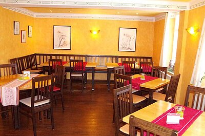 Das Haus ist im Stil eines französischen Landgasthauses eingerichtet. Die Theke zählt zum beliebtesten Treffpunkt der Gäste, die nur Zeit für ein schnelles Pils haben. Die originell eingerichteten Gasträume haben ein gemütliches Ambiente. Auf der Sonnenterrasse ist die Altstadt hautnah zu erleben. Ja, und für die Raucher hat der Gastwirt vor dem Lokal eine ansprechende Lounge eingerichtet. Sein Motto: "Sich begegnen, miteinander feiern , genüsslich schlemmen!"