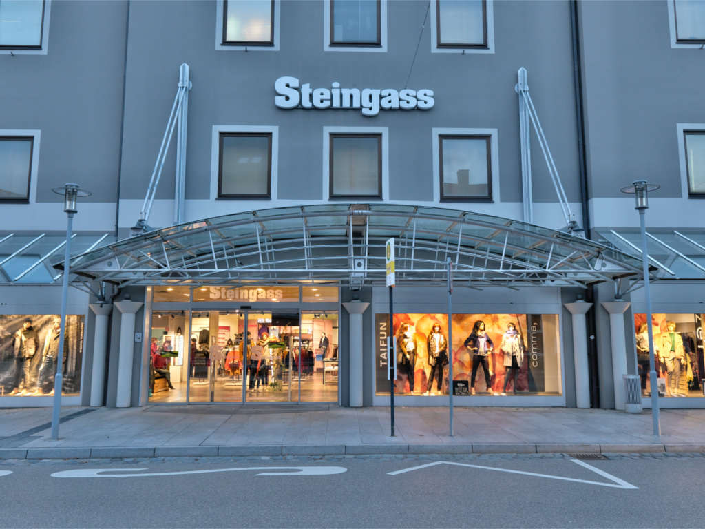Mode für die ganze Familie…auf 5 Etagen mit 3000 qm Verkaufsfläche, finden Sie bei uns viele führende Marken aus den Bereichen Damen-, Herren- & Kindermode, Wäsche & Strumpfmode, Handtaschen, Lederwaren & Koffer, sowie eine große Auswahl an Sportartikeln und Sportmode in unserer Intersport Abteilung. Das Team vom Modehaus Steingass freut sich auf Ihren Besuch.