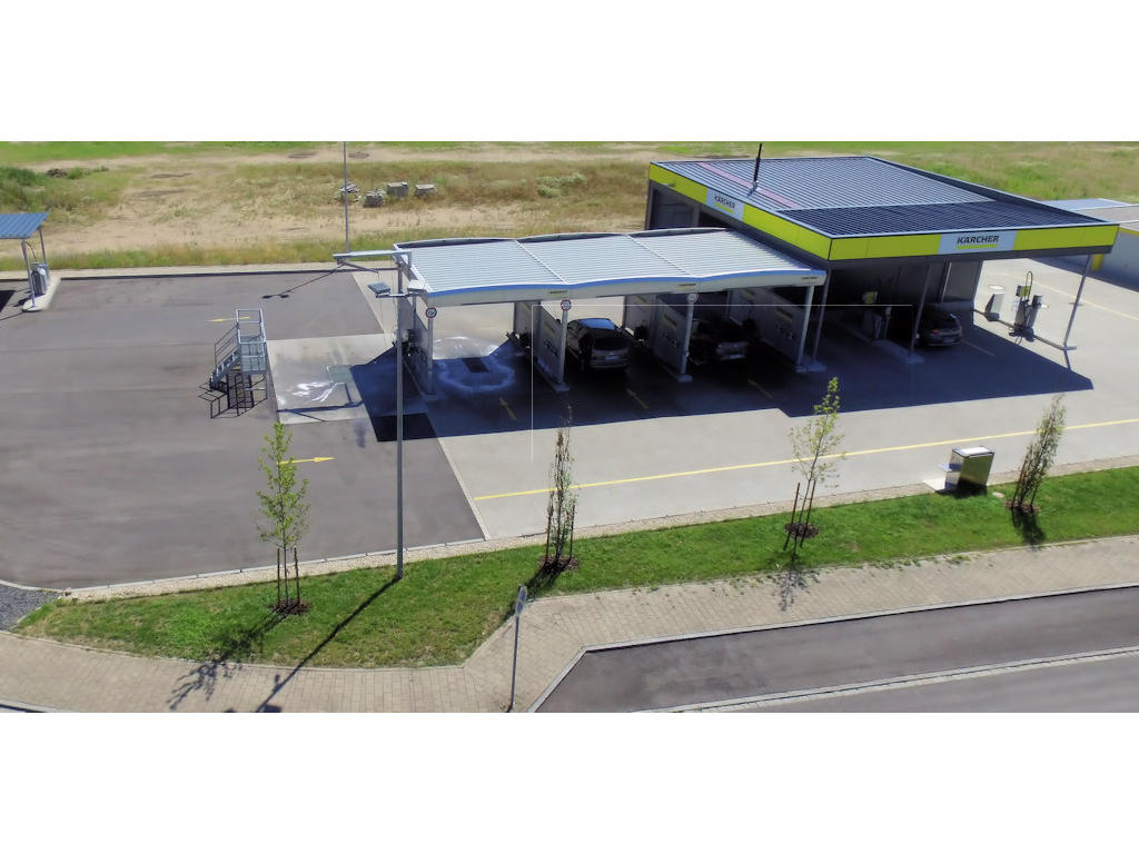 Der Kärcher Waschpark / Cleanpark unterstützt Sie bei Ihrer SB-Wäsche mit der neuesten Technik. Eine Portalwaschanlage mit auf den Bedarf abgestimmten Reinigungsprogrammen, 3 SB-Waschplätze, ein Portalwaschplatz mit Podest für LKW-Zugmaschinen, Hurricane-Guns für die professionelle Innenraumaufbereitung sowie ein Kärcher Profi-Fußmattenreiniger stehen für Sie bereit.