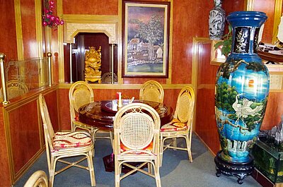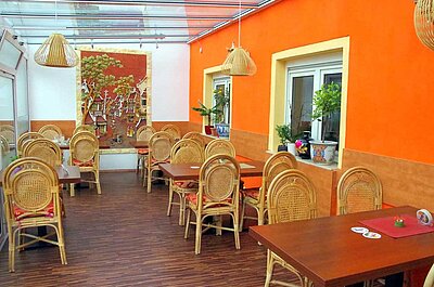 Lang ist die Liste der asiatischen Gerichte. Verlockend liest sich das Menü für zwei Personen: eine Suppe („Mien Ga“) und ein gebratenes Hähnchen („Ga Mayo“). Natürlich gibt es neben Hühnerfleisch-, Rindfleisch-, Entenfleischgerichten auch leckere Speisen mit Meeresfrüchten, dazu würzige Suppen und leichte Salate. Vegetarier kommen ebenfalls auf ihre Kosten.