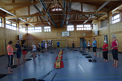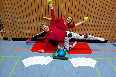 Spezialisiert mit z. B. Spiralmuskeltraining, Sturzprophylaxe, Beckenbodengymnastik.