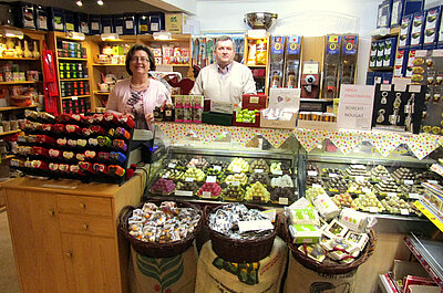 Wenn es auf die Qualität ankommt, dann braucht es nicht unbedingt eine riesige Ladenfläche. „Siebauers Süße Ecke“ in Gunzenhausen, Marktplatz 16, ist der Beweis dafür. Susanne und Bernhard Siebauer wirtschaften nach dem Motto „Klein, aber fein“. Und ganz danach schaut das Angebot aus, das mehr enthält als nur Süßigkeiten (natürlich von den namhaftesten Produzenten), sondern eben auch ausgewählte Weine, feine Brände (z.B. „Hesselberger“ aus der Region), Pralinen (von Lauenstein und Peters & Wagner), Feinkost und Konfitüren.