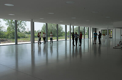 Die Gesamtfläche der Halle umfasst 4.100 m². Sie ist um insgesamt 1.000 m² größer als die alte Halle. Das Foyer ist hell und lichtdurchflutet. Die Fläche wurde auf 630 m² vergrößert und ist damit doppelt so groß als vorher. Alleine im Foyer wurden 180 m² Glasflächen verbaut. Die weiteren Glasflächen umfassen 160 m².