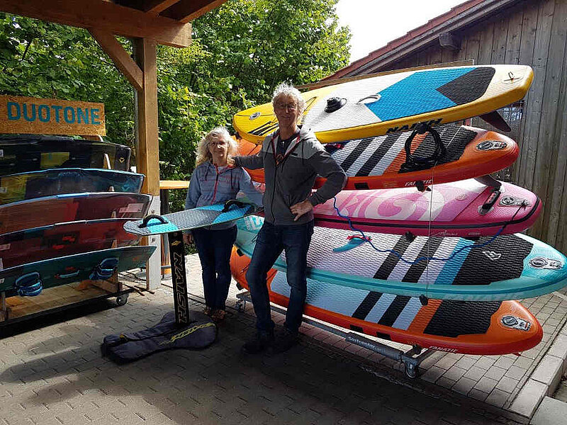 Die kompetente Anlaufstelle für Verkauf, Vermietung und Schulung in den Trendsportarten Windsurfen, Kitesurfen und Stand-Up-Paddling. Doch auch für Nicht-Wassersportler gibt es ein umfassendes Angebot, so vermieten Willy und Lydia Rupp Rikschas und Fahrräder für Ausflüge rund um den See.