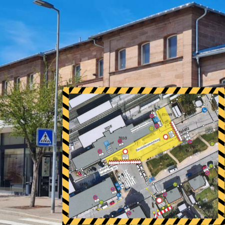 Ab dem 28. Januar 2025 wird der Bahnhofsplatz halbseitig und der Vorplatz vollständig gesperrt. Der gesperrte Bereich dient als Lagerfläche für Baumaterialien und als Stellplatz für Maschinen und Container.